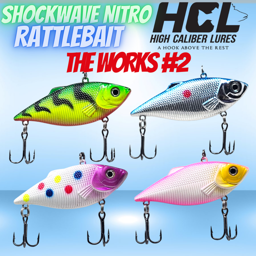 “The Works” is all 8 - 3/8 oz Rattle baits in total! The HCL Shockwave Nitro is a force to be reckoned with and this set of 4 give you the edge th...